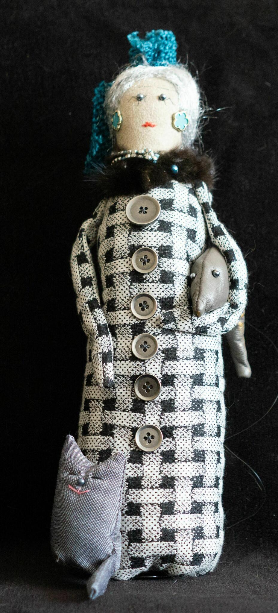 Uhkelt ehitud, ruudulises kleidis hallipäine daam