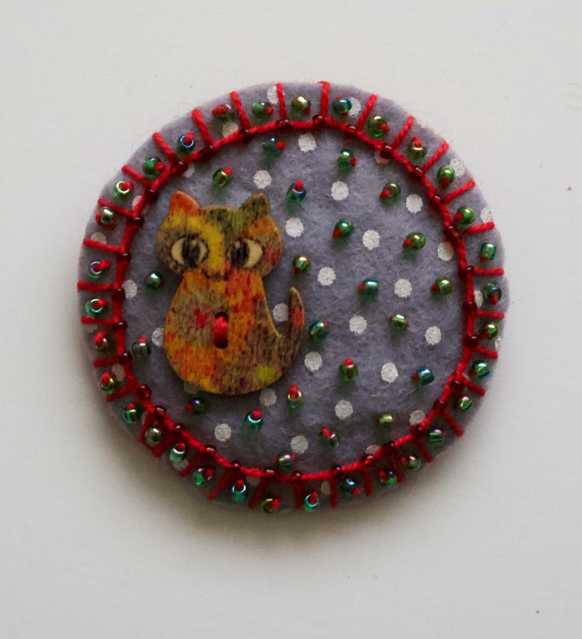 Fliisriie, pärlid, tikand, kinnitamiseks metallhaaknõel inglise lukuga - ei kao ära
