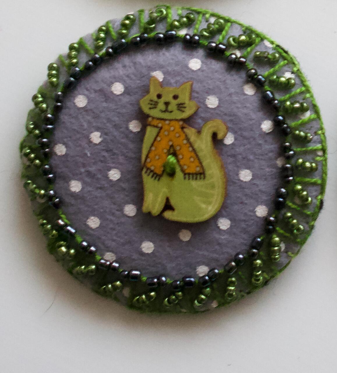 Fliisriie, pärlid, tikand, kinnitamiseks metallhaaknõel inglise lukuga - ei kao ära