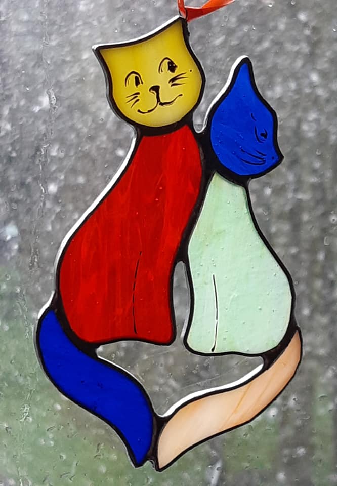 Erksavärviline (kollane, oranž, punane, heleroheline, sinine) erineva tekstuuriga klaasist vitraaž