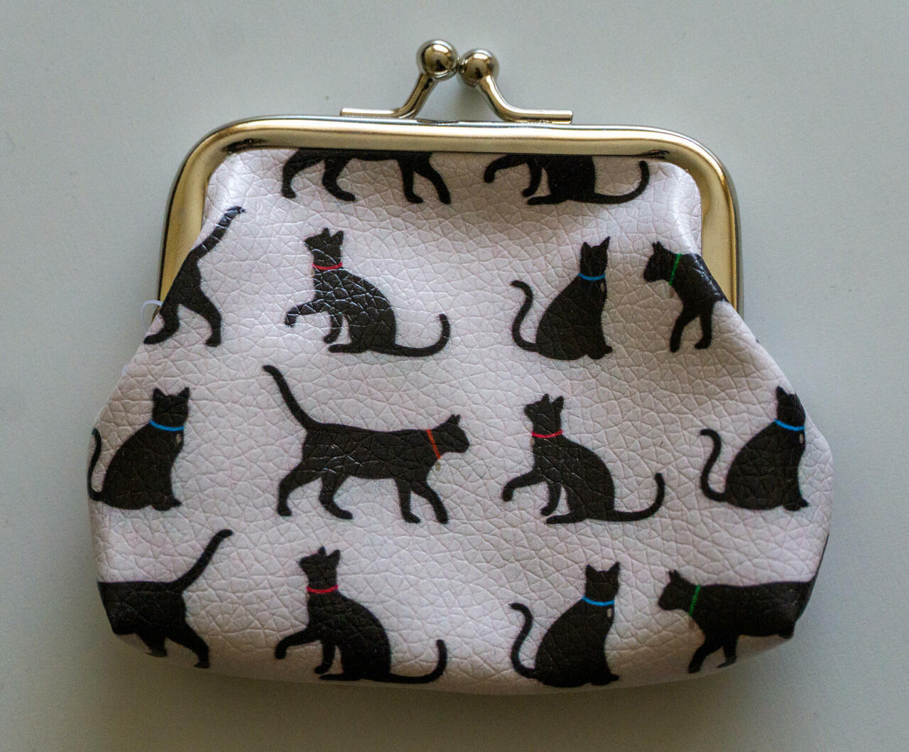 Paljude mustade kassidega rahakott, klõpsuga kinnitus